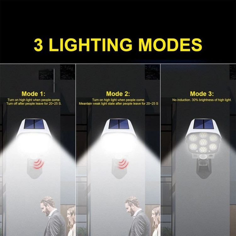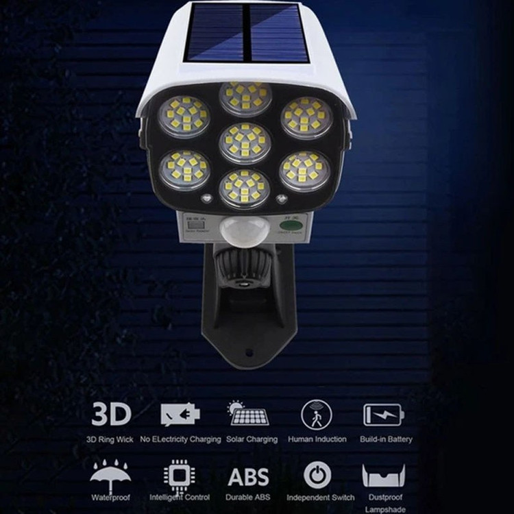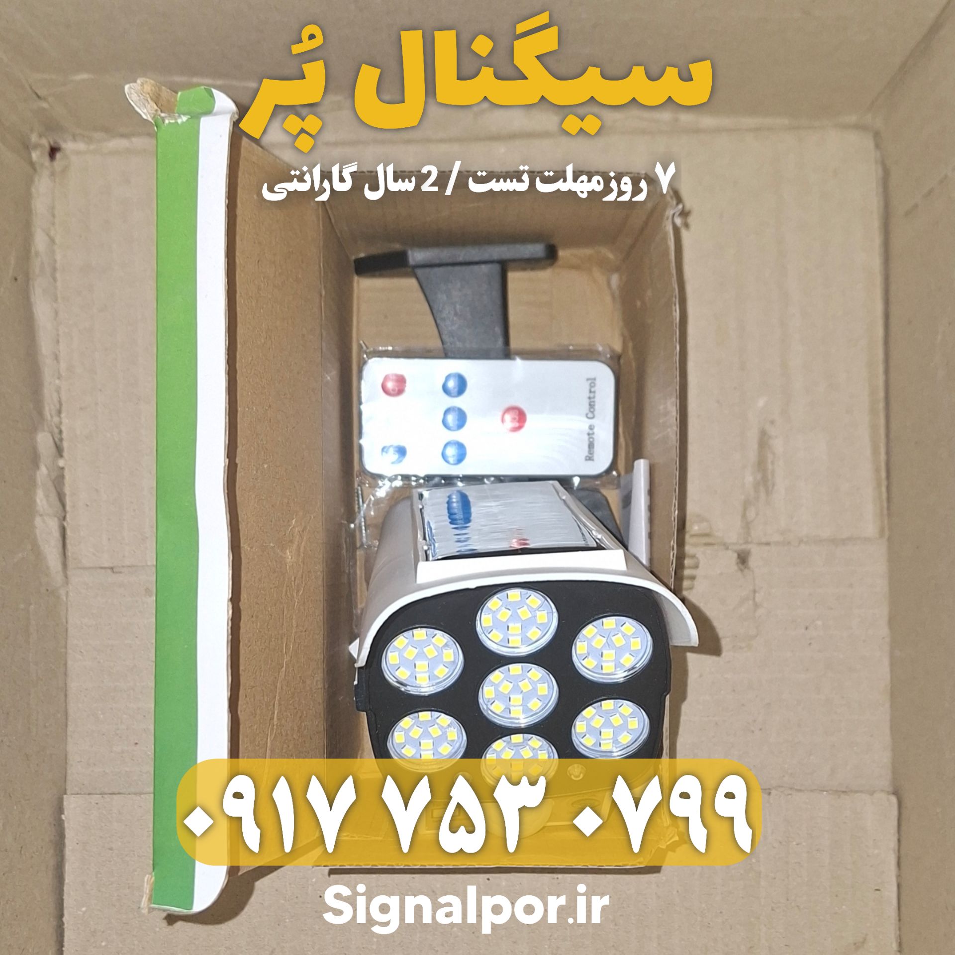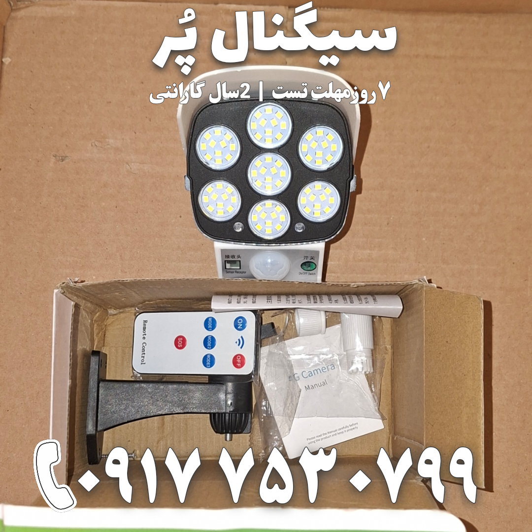 پرژکتور دیواری خورشیدی Solar Sensor Light چراغ سنسور LED کنترل از راه دور طراحى مدل دوربینی با نوردهى بالا و نصب آسان، بدون نیاز به کابل کشى و داراى پنل خورشیدى است. رنگ: سفید + مشکی باتری: داخلی قابل شارژ ولتاژ کاری: ۵ ولت عملکرد: سه حالت فاصله القایی: ۵ متر جنس: پلاستیک ABS ضد آب: کلاس زندگی دارای ۷۲ ال ایدی ریموت کنترل کم مصرف نور زیاد محافظ چشم سنسور حرکتی سنسور شارژ خورشیدی ضد آب ۳ حالت مختلف دمای کارکرد: از ۱۰- تا ۶۰+ سانتی گراد